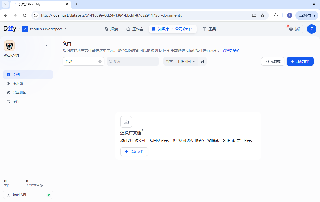 然后添加知识库文件,配置 embedding 模型,继续下去。